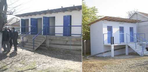Left: School toilet in the Perieti commune, Ialomita, right: Sanitary group in Teleorman