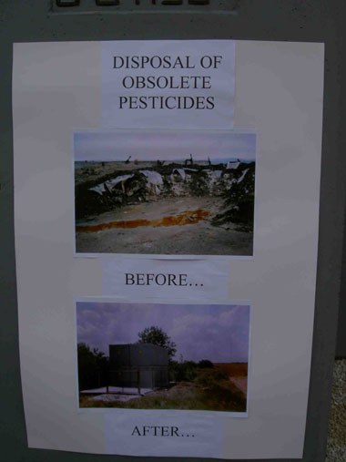 A poster on a case study of cleaning up an obsolete pesticide dump.