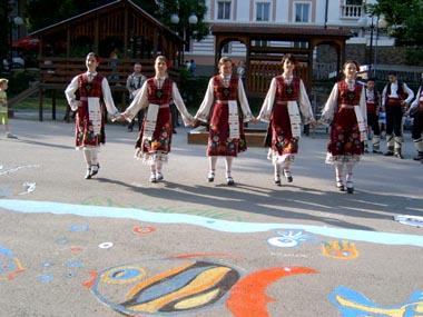 The city brass band was playing all the time music from various Danube countries. The closing was done by a youth folk dancing group.