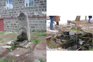 Public tap on the street in project villages Fantan (left) and Hayanist (right). Villagers carry water from them in canisters to their homes. In Hayanist, some connected their houses themselves.