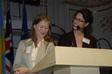 Sascha Gabizon, WECF Executive Director, and Genon Jensen, HEAL Executive Director, present Best Practice awards in Vienna for projects in the field of children’s environmental health.