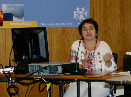 Svetlana Slesarenok, director of Black Sea Women’s Club, Odessa Ukraine, told the audience that in her daily live she is confronted with the health risks of nuclear industry. “Recently my husband bought spare parts for our car on the Odessa market. The Geiger-counter of a befriended scientist showed that the parts were highly radioactive. Probably these parts come from Chernobyl storage. Most cars and other equipment stored after Chernobyl have been stolen. These parts have been sold probably in all neighbouring countries, including EU countries” said Slesarenok.