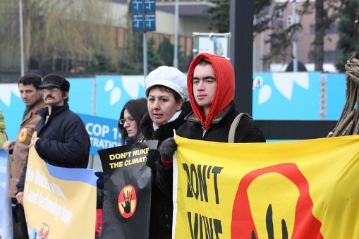 On December 10 three dozen environmental leaders from 16 countries braved icy cold weather in front of the UN Framework Convention on Climate Change (UNFCCC) Meeting in Poznan, Poland where they called nuclear power “a Mickey Mouse solution” to climate change.The activists were carrying banners and posters with lively slogans including“Don’t Nuke the Climate,” “No Nuclear Power in The Clean Development Mechanism (CDM)” and “Nuclear Power, No Thanks!”