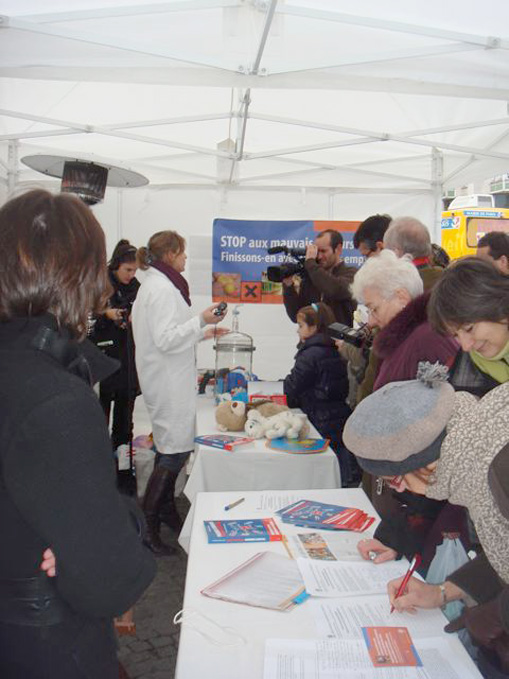 Pas de tests à Annemasse, mais une forte mobilisation des parents, qui sont venus nombreux s’informer et manifester leur inquiétude au sujet des jouets dangereux. Ils ont tous signé la lettre adressée au Parlementaires et Ministres européens en faveur d’une législation plus stricte.
