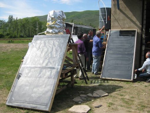 From February to June 2009, four students from France (Université de Savoie Annecy / Annemasse) worked with the WECF partner organisation RCDA (Rural Communities Development Agency) in Misaktsieli, Georgia, on development of simple but effective solar collectors and other solar installations especially for rural areas (solar fruit driers, solar water distillator / milk pasteurizer, solar oven...). Before their stay in Georgia, they were prepared for this special task by a one-week-training at the WECF partner company Solar Partner Sued in Germany.