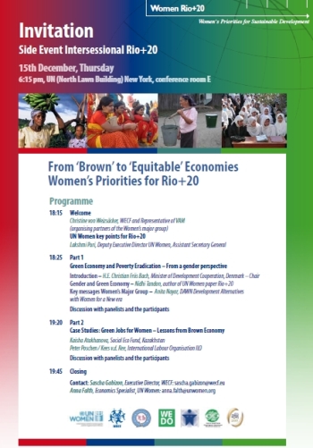 WECF is co-organising a side event entitled 'From 'Brown' Economy to 'Equitable' Economy - Women's priorities for Rio+20".