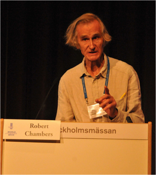 In the following presentations, three practical responses in terms of WASH interventions were given to support efforts to reduce undernutrition. Robert Chambers, replacing Kamal Kar of the CLTS foundation, gave a presentation about how community-led total sanitation (CLTS) is one way to do this. He called for a new category of diseases - Faecally Transmitted Infections (FTIs), so that it becomes apparent for everybody how important sanitation and hygiene are.