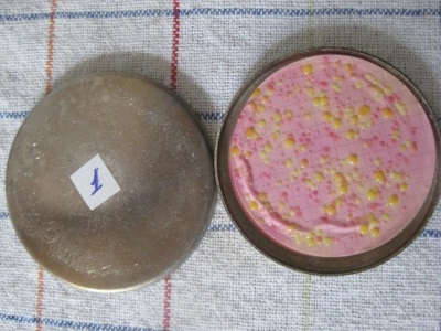 Yellow spots indicating Total Coliform bacteria in a water sample