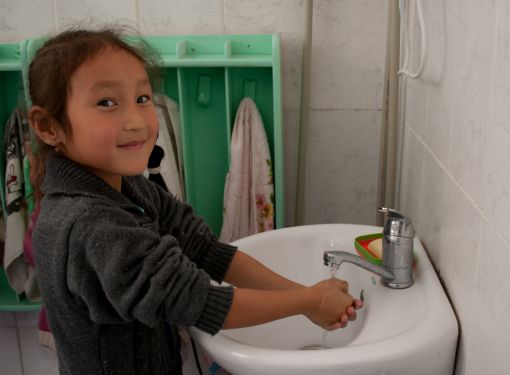 "Germ free hands and happy smiling faces at Kyrgyzstan kindergardens"