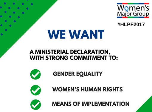 The Women's Major Group has issued a statement on the High Level Political Forum's Ministerial Declaration (read in full here). Show your solidarity to the local movements, realities from the ground and women's human rights by signing the google form (below)