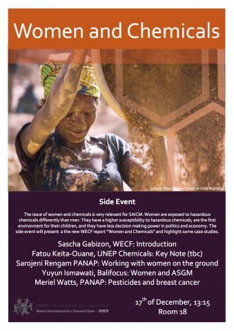 WECF will host a side event on 17 December on "Women and Chemicals" during the SAICM meeting in Geneva. . Women are exposed to hazardous chemicals differently than men, have a higher susceptibility to hazardous chemicals, are the first environment for their children, and have less decision-making power in politics and economy.
