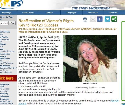 IPS U.N. Bureau Chief Thalif Deen interviews SASCHA GABIZON, executive director of Women International for a Common Future