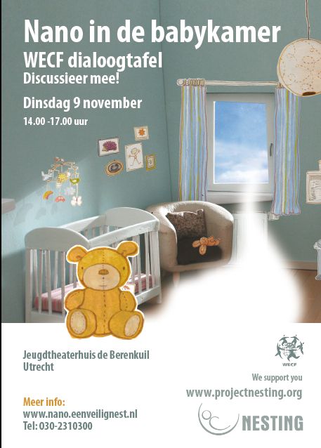De dialoogtafel “Nano in de babykamer” zal plaatsvinden op dinsdagmiddag 9 november van 14.00 uur tot 16.30 uur in Jeugdtheaterhuis de Berenkuil in Utrecht. Naast jonge (groot)ouders, komen ook retailers en onderzoekers aan het woord. De dialoog vindt plaats in Jeugdtheaterhuis De Berenkuil aan de Biltstraat te Utrecht. De toegang is gratis.