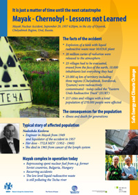 The WECF exhibition focuses on the human population around the Mayak nuclear plan in Russia. Grandchildren of 20 pregnant women who were engaged in the clean up of a serious accident in 1957 suffer health effects which can be traced back to the radiation disease of their grandmothers.