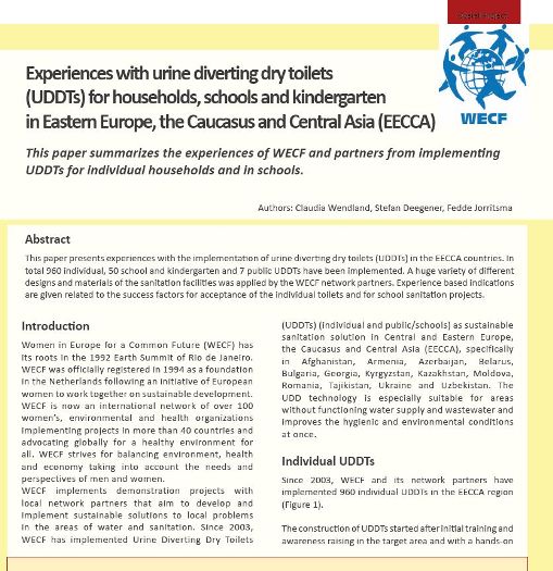 Experiences with urine diverting dry toilets (UDDTs) for households, schools and kindergarten in Eastern Europe, the Caucasus and Central Asia (EECCA)