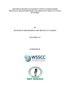 An Expression of Interest was made by WSSCC Nigeria to conduct a research study to ascertain the level of Menstrual Hygiene Awareness regarding menstruation and menstrual practices in physically challenged and marginalized young women and adolescent girls in Borno, Lagos, Benue, Taraba, Ebonyi, Nasarawa, Kano, Yobe, Edo and Kogi States. The overall objective was to examine the influence of religious affiliation, culture and educational status on menstrual hygiene of the physically challenged and marginalized schoolgirls, girls out of school and women. The main objectives of the study was to identify challenges that physically challenged and marginalized women and adolescent girls faced during menstruation and analyzing their impact on women and girls in the 10 states from September to October 2016 with a view of stepping up the evidence based advocacy in the target States for the improvement of equitable sanitation.