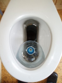 In a Urine Diverting Dry Toilet (UDDT), no water is used for flushing. The principle of a UDDT is to keep faeces and urine separated.
