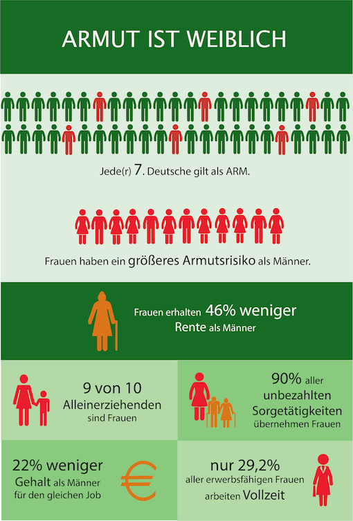 Geschlechtergerechtigkeit ist uns bei alledem sehr wichtig. Im letzten Jahr haben wir daher die Broschüre "Armutsrisiko Geschlecht" veröffentlicht. Darin kommen neben Expertinnen auch betroffene Frauen zu Wort.