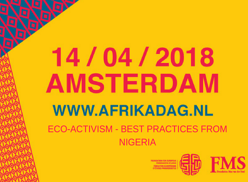 Op zaterdag 14 april is het zover, de Afrikadag 2018: hét event over Afrika en internationale samenwerking in het KIT in Amsterdam, georganiseerd door FEPS en FMS. Doe mee met onze workshop over eco-activisme in Nigeria!