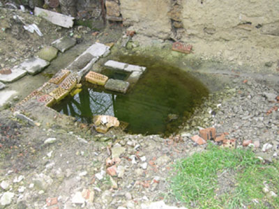 Overflowing septic pit in garden of household in a village, NE Bulgaria