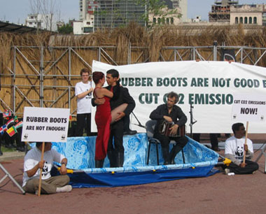 As an illustration of the conference: a WWF event at the Climate Summit in Buenos Aires; Tango with Rubber Boots in a Pool