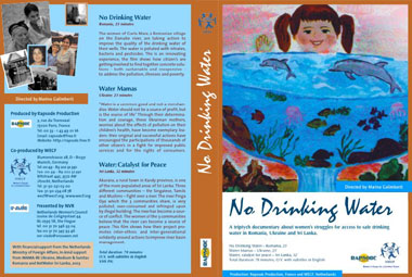 The 3 documentaries, which were produced in 2003 for the World Water Forum in Kyoto, have toured the world and have been shown at over 20 festivals. The next screenings will be at the Paris Human Rights Festival from 23 of March till the 4th of April (www.festival-filmdroitsdelhomme.org), on the 8th of April at the EcoFilm Festival of Rubaix France (www.ecofilm.org) and in May at the Ceara Festival in Bresil (www.festivalcineceara.com.br).