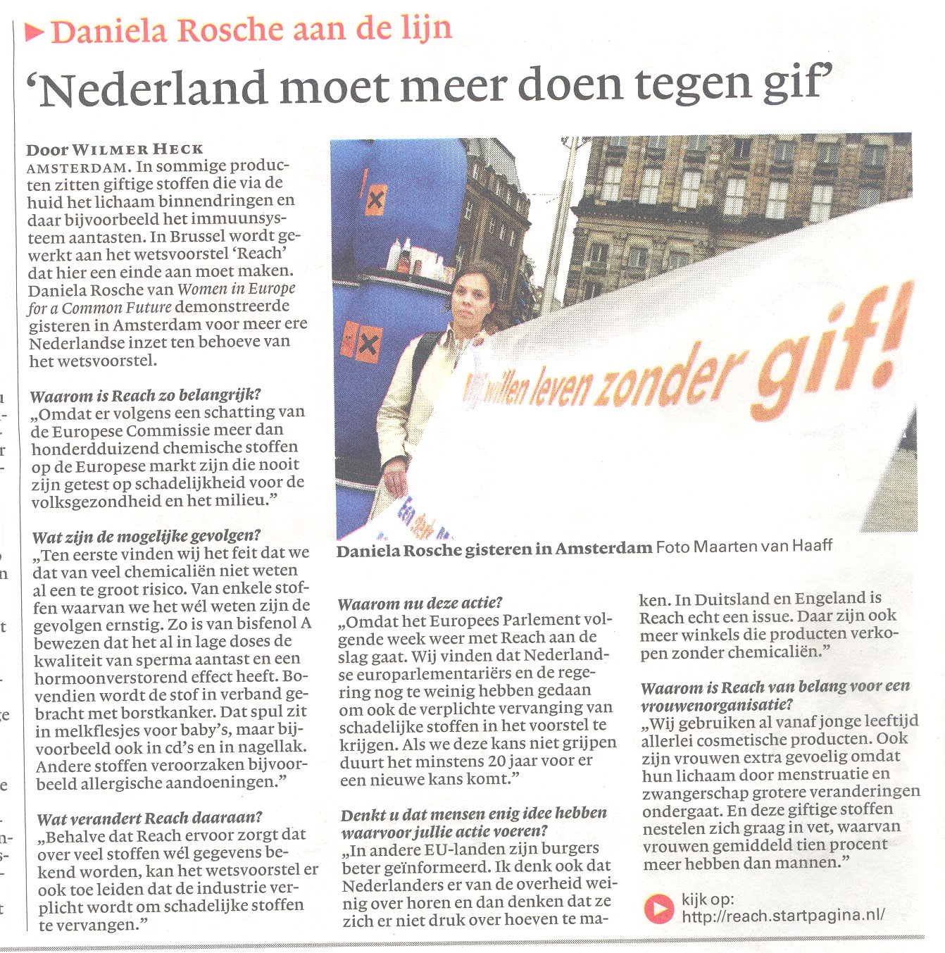 Nederland moet meer doen tegen gif!, Daniela Rosche aan de lijn, NRC Next 16 juni 2006