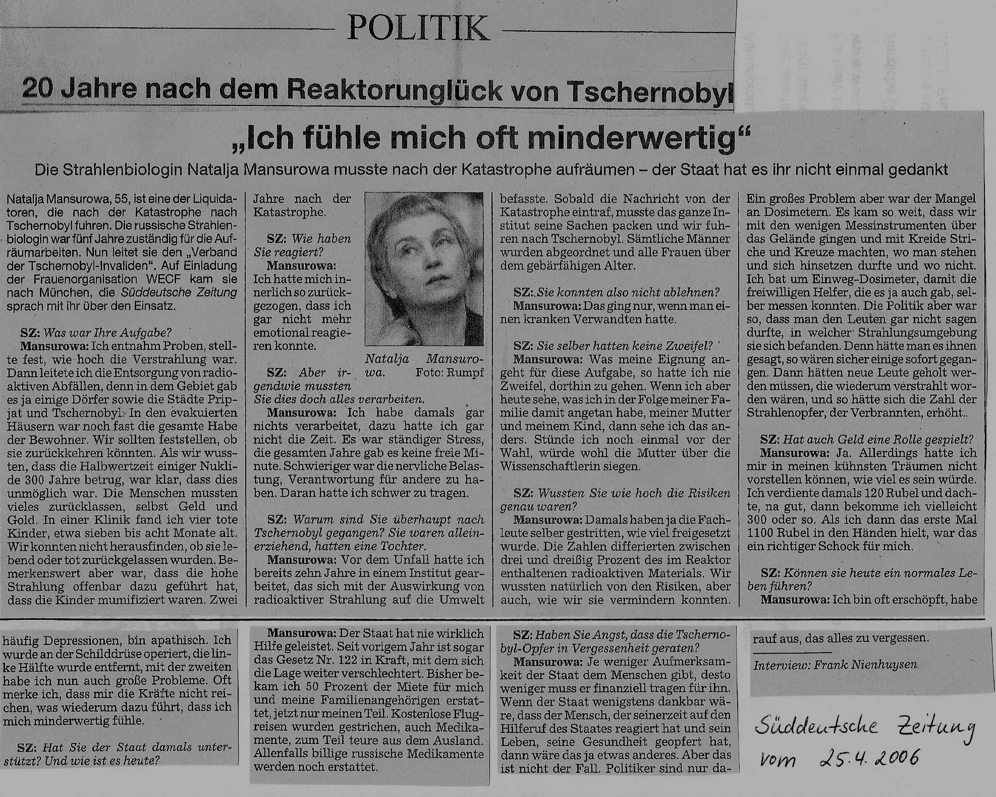 Tschernobyl + 20: „Ich fühle mich oft minderwertig“