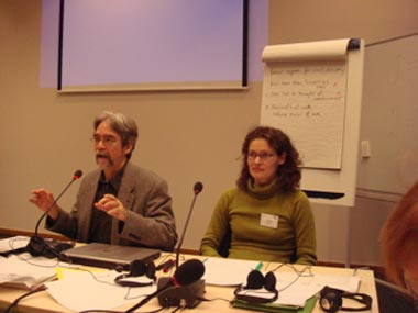 Victoria Elias, chair of Eco-Forum, and John Hontelez Director of EEB, leading the drafting group for the NGO Statement to Belgrade