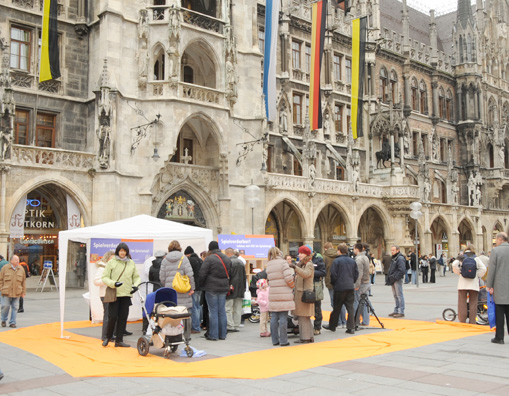 WECF setzt sich auf dem Münchner Marienplatz für giftfreies Spielzeug ein! (Text in German)