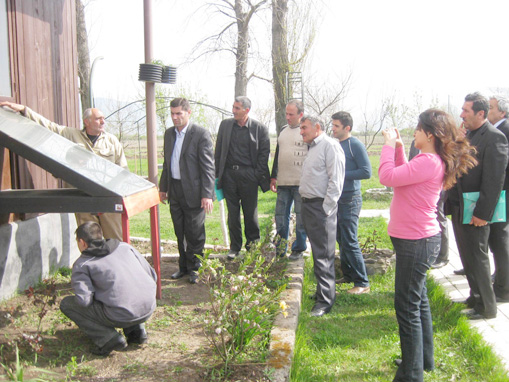During the third day alternative energy technologies were discussed in more details. A solar fruit dryer and a bricketing machine were built in practice by the participants themselves with the help of RCDA engineers. The participants were extremely enthusiastic, and in the evenings they voluntarily gathered again in the seminar room in order to demand more information on the seminar topics. Most of the proposed technologies suited their needs, and priorities were identified. The final evaluation of the study visit showed that the participants were very satisfied, and there is a need for practical follow up trainings during which the technologies will be built in reality in Azerbaijan. This is the next phase of the project.