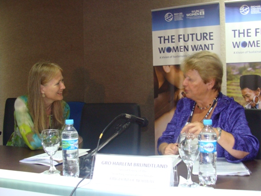 In the Rio Outcome document we need to assure women’s leadership in the new intergovernmental processes as proposed in the new Brazilian text, the one on finance and the one on Sustainable Development Goals. When the outcome document says that geographical balance should be assured, we need to insist to add just one word, gender: geographical and gender balance.