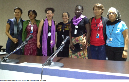 “We have had testimonies from women from different countries of the South. We have heard how women’s land and resources are being grabbed…..We have heard that pollution of massive scale is created, soils degraded, and people being displaced, after having cared for these resources for centuries, are now turned into refugees.”