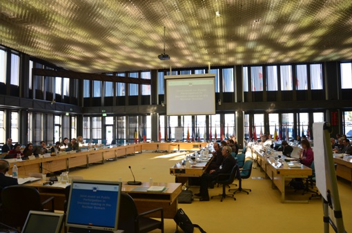 The first day started with an overview of the recent and upcoming developments in European Union legislation. The relevant departments of the European Commission presented the information and transparency provisions of the respective Directives, in particular 2009/71/Euratom and 2011/70/Euratom. The aim of the revised EIA Directive COM (2012)628 will be to make decision-making more transparent and effective. One example is the introduction of time frames of between 30 to 60 days for consulting the public. Furthermore, the general problem of the non-application of the Aarhus Convention under the Euratom was highlighted.