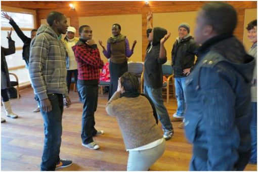 Participants were making body sculptures on how they feel (see above) and organizational body sculptures showing gender relations inside their organisation The discussion reflected on what the sculpture was saying about the internal dynamics of the organization, very exciting!