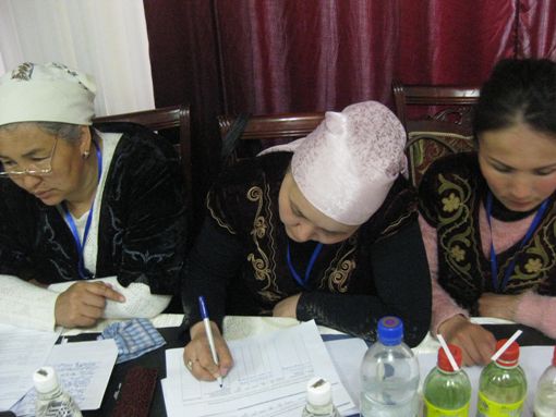 These stakeholders included training representatives from rural schools, the village council, the rayon epidemiological center of Alai, Uzgen, Aravan, Osh oblast, CDWUUs and NGOs from Issyk-Kul oblast and Bishkek city. 18 people participated in the training session altogether, and it lasted two days.