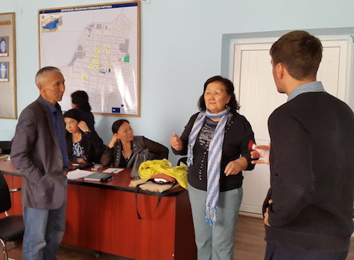 KAWS and BORDA representatives discussing with Joldosh Bayaliev – CDWUU Chair of Bokonbaev village (left)