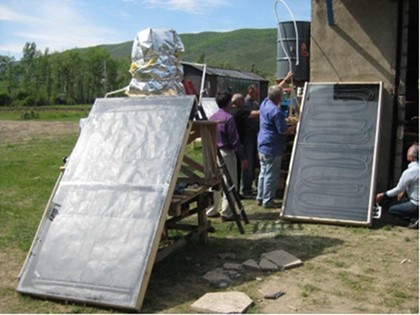 Picture 3: simple solar collectors made from old radiators, UGAM