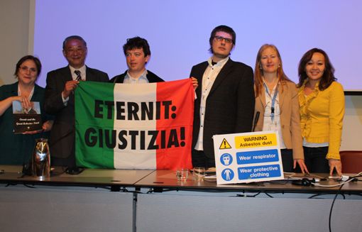 “These seven countries, allied to the asbestos industry, are demonstrating contempt for the right of countries to prior informed consent, which is the whole purpose of the Convention,” said Alessandro Pugno of the Association of Asbestos Victims Families, Casale, Italy. That is why we have once against brought one hundred people, representing asbestos victims organisations, in front of the UN headquarters in Geneva and presented to the president of the conference their letter, calling for chrysotile asbestos to be listed.