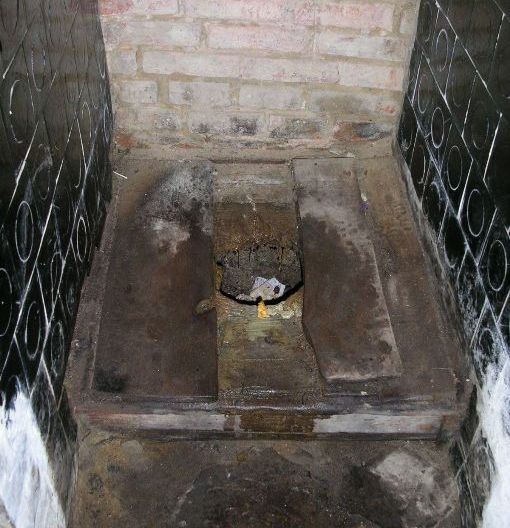 An old, private toilet in Ukraine, allowing faeces to seep into the