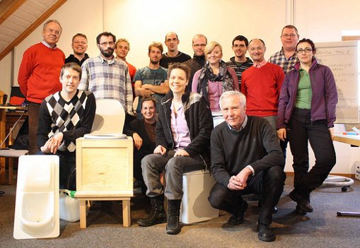 20 hochmotivierte TeilnehmerInnen informierten sich über und diskutierten zur drängenden Herausforderung mangelnder Sanitärversorgung in weiten Teilen der Welt. Die aus Deutschland, Belgien und Österreich angereisten TeilnehmerInnen arbeiten entweder ehrenamtlich oder hauptamtlich für NROs, die in der Nothilfe, Übergangshilfe oder Entwicklungszusammenarbeit aktiv sind bzw. an universitären Forschungseinrichtungen. Von EinsteigerInnen bis zu EntwicklungshilfeexpertInnen war ein breites Spektrum an Erfahrungen vertreten. Oftmals war und ist ein privates Engagement Ausgangspunkt für die Initiierung der konkreten Projekte, sei es bspw. der Aufbau einer Schule, Waisen- oder Krankenhauses. Große Hilfsorganisationen waren ebenso mit MitarbeiterInnen vertreten, die sich über Lösungen für die Sanitärprobleme innerhalb ihrer Projekte informieren wollten. Allen Projekten gemein ist die Tatsache, dass das Thema Toiletten früher oder später auf den Plan kam und zunächst keine eigene Expertise dafür vorhanden war.