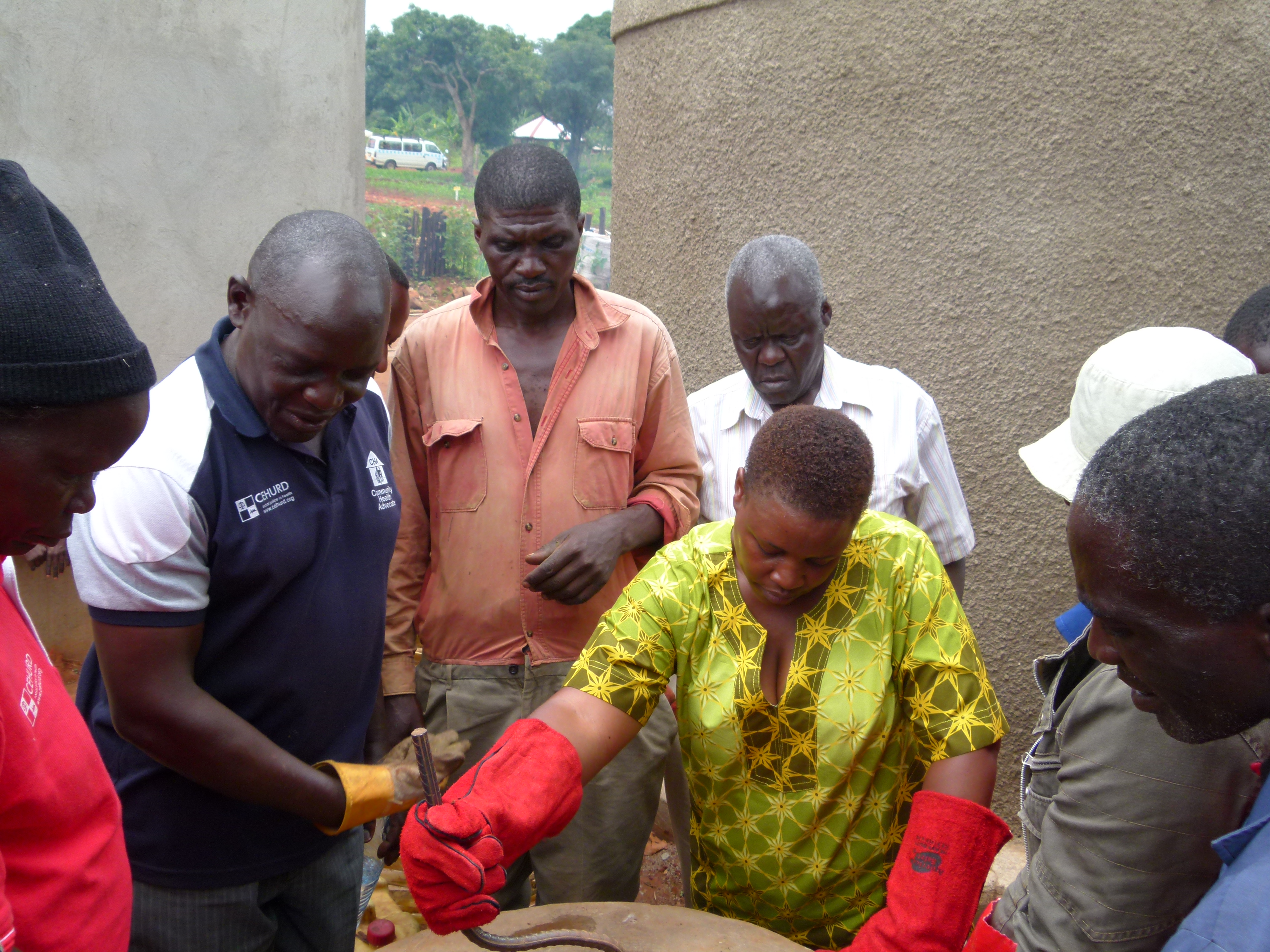 In diesem praktischen Teil besuchten die TeilnehmerInnen ARUWEs Modellbauernhof und lernten, wie man unterschiedliche Landwirtschaftssysteme (Getreide und Nutztiere) integrieren und verwalten kann sowie das Weben von Bambuskörben für Biogas-Zwecke und Wassertanks. Sie konnten des Weiteren zwei Arten von Toiletten testen: Biogas- und ecosan-Toiletten. Auch das Kochen mit Biogas konnten sie selbst ausprobieren.