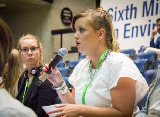 Während eines zweistündigen tweetathon (ein Tweetmarathonlauf auf Twitter) haben es unsere ECO-Forum Jugendlichen geschafft, mehr als 108,000 Menschen auf Twitter mit Nachrichten über, Gender und den Dimensionen des Abfalls eines Einzelnen Menschen, zu erreichen. In ihrem Side-Event zum Thema hat unsere Junior Genderbeauftragte Hanna Gunnarsson kundgetan, dass “Wir auf andere nicht warten können, um aufzuhören, unsere Zukunft zu vergeuden; es liegt an uns sie nicht zu vergeuden”. Der Eco Forum-Jugend wurden auf dem Side-Event 25 Podium-Minuten zur `Industriellen Verschwendung´ zugeteilt. Während ihrer Diskussionrunde fügten sie auch ihre persönliche Sicht zum Thema hinzu. Als Erstes zeigten sie den gemeinschaftlich produzierten Film (siehe unten), den sie vor der Ankunft zur Konferenz gedreht hatten. Dimosthenis Sarigiannis, (Universität von Thessaloniki, Griechenland) hat über die sich umkreisende Wirtschaft gesprochen. Miroslava Jopkova (Arnika, Tschechien) betonte die Wichtigkeit dessen, schädliche Chemikalien nicht zu recyceln. Während Miriam Müller (Beauftragte für Soziales, Deutschland) einen Blick auf eine nachhaltigere Zukunft geboten hat, auf die Wichtigkeit, Müll zu minimieren und junge Unternehmen zu fördern, die unsere Gesellschaft mehr in Richtung Recycling führen.