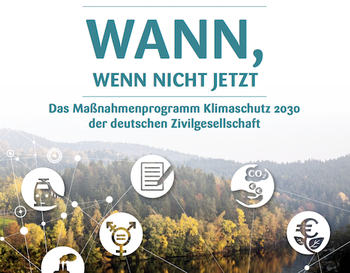 Mehr als sechzig Organisationen aus der Zivilgesellschaft haben ein umfassendes Forderungspapier erarbeitet, in dem die notwendigen Maßnahmen in allen klimapolitischen Handlungsfeldern beschrieben werden, damit Deutschland sein Klimaziel 2030 erreicht. Zentrale Forderungen sind ein baldiger Kohleausstieg, die schnelle Umsetzung der Verkehrs- und Agrarwende sowie ein ambitionierter CO2-Preis.