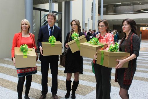 Er was veel aandacht voor het initiatief, en vooral veel bekijks op straat waar we fietsten met onze groene dozen. En natuurlijk bedankt aan alle TK-leden die kwamen: Joel Voordewind, Carla Dik-Faber, Cora van Nieuwenhuizen, Pieter Heerma, Pieter Omtzigt, Liesbeth van Tongeren, Marianne Thieme (met baby), Marit Maij, Loes Ypma en Lutz Jacobi die extra langskwam en ons kwam promoten.