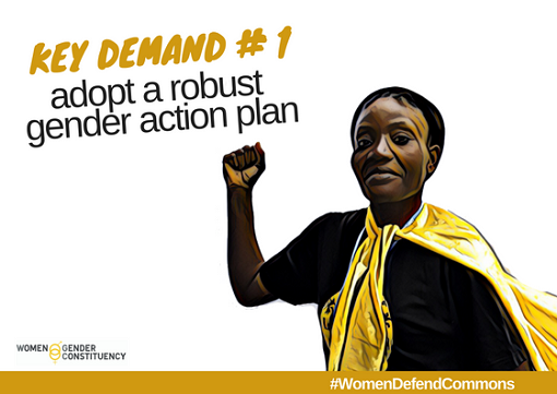 We hebben, samen met de andere leden van de Women & Gender Constituency, 19 kerneisen opgesteld welke we gebruiken in ons advocacy werk gedurende de klimaat onderhandelingen (UNFCCCC Conference of Parties, COP23). Deze kern eisen benadrukken een gender rechtvaardige transitie weg van het gebruik van fossiele brandstoffen.